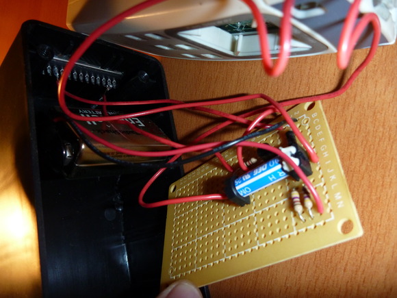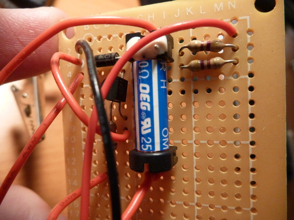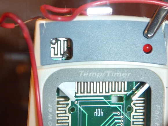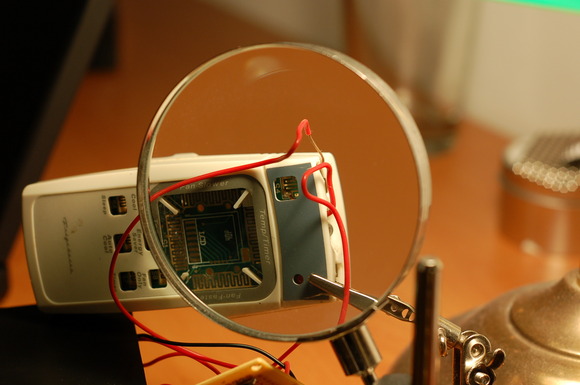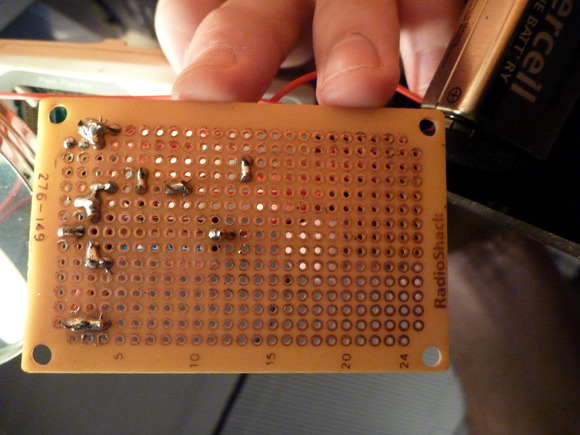 Shot of the soldered connections on the back of the board, in case you are actually trying to trace the circuit :).