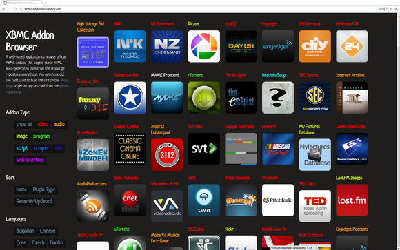 It’s a static website that gets updated every hour from the official git repository. You can filter plugins by type (Video, Audio, etc.) or by available languages. You can also sort the plugins by name, type or last updated date. For each plugin the name and icon is displayed by default. If you click on an icon, the view toggles and shows lots of information about the plugin. If there are multiple translations of the description, those are shown as well.